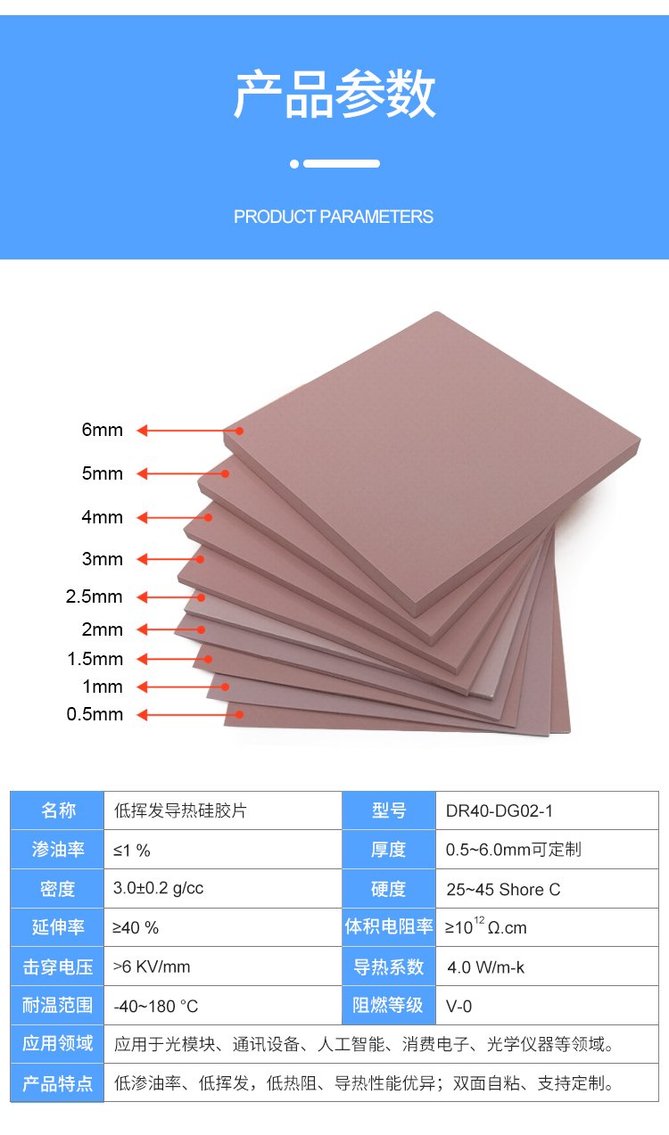定制低挥发导热硅胶片光学仪器电子散热硅胶垫片0.5-6.0mm绝缘片
